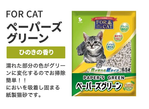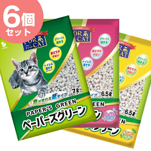 FOR CAT[フォーキャット] ペーパーズグリーン 6個セット / 無香料 せっけんの香り ひのきの香り / 国産猫砂 紙砂 新東北化学工業 4901879002484 #w-136056 燃やせる 流せる 色が変わる【お得なケース価格】【送料無料】