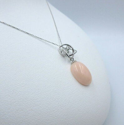 ボケ珊瑚 ペンダント 長径15mm ペア—シェイプ K18WG ダイヤモンド 揺れる 桃 さんご サンゴ コーラル sango coral 本珊瑚 無染色 宝石サンゴ
