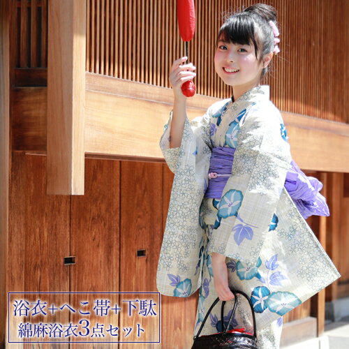 [浴衣サイズ]●11才〜12才用身丈約140cm袖丈約63cm裄約63cm対応身長…135〜145cmくらい●13才〜14才用身丈約150cm袖丈約49cm裄約65cm対応身長…145〜155cmくらい[素材]綿80%、麻20%モデル身長・・・140cm[下駄対応サイズ]23.0〜24.5cm※浴衣の柄の配置はモデル着用とまったく同じではございません。