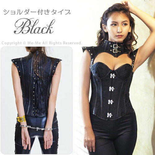 スチームパンク コルセット[sl51720][ec5901] 選べる2type・2color! S〜XXLサイズ フェイクレザーとジャガード生地の異素材使いが美しいコルセット♪