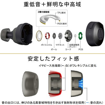 安定したフィット感完全ワイヤレス専用イヤピース 優れたアイソレーションと安定した装着感を追求し、完全ワイヤレスのための専用イヤピースを設計しました。